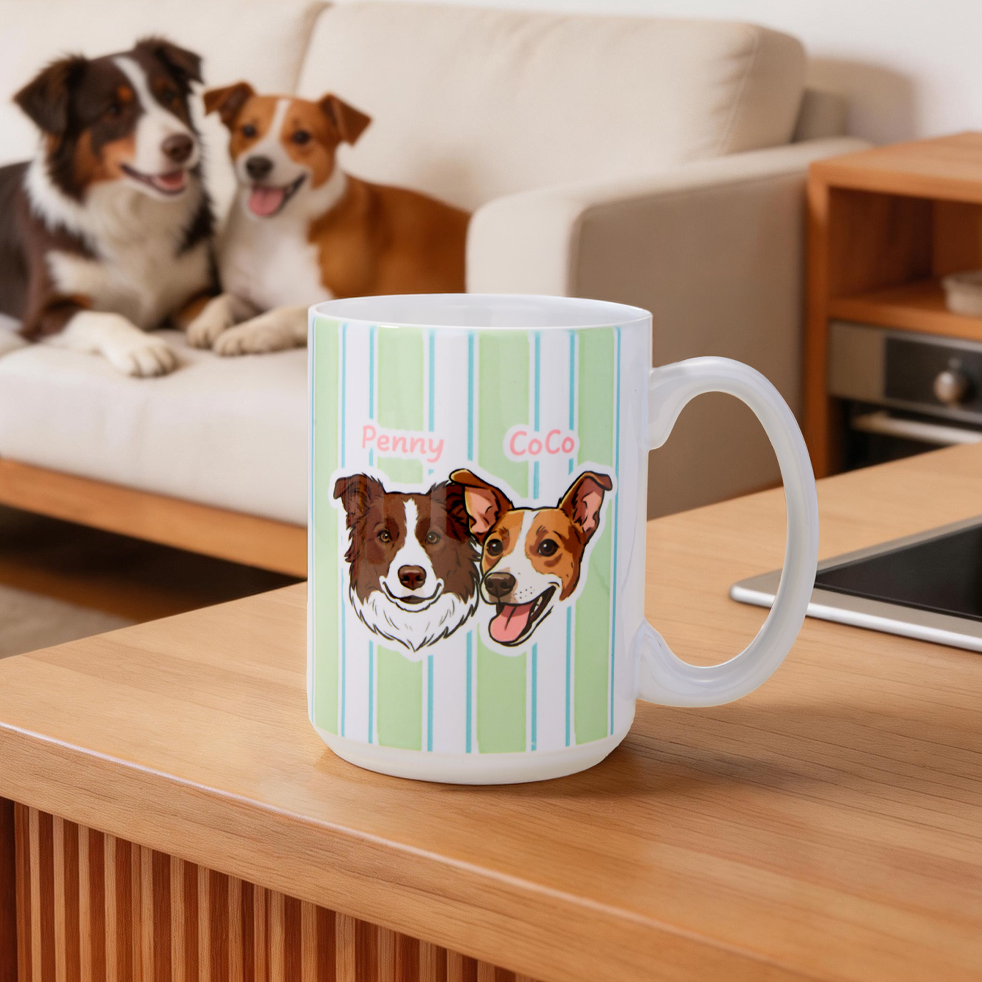 High-quality ceramic mug, available in multiple sizes; Suitable for dog lovers and pet enthusiasts; Perfect personalized gift for birthdays, holidays, or any special occasion; Dishwasher and microwave safe.